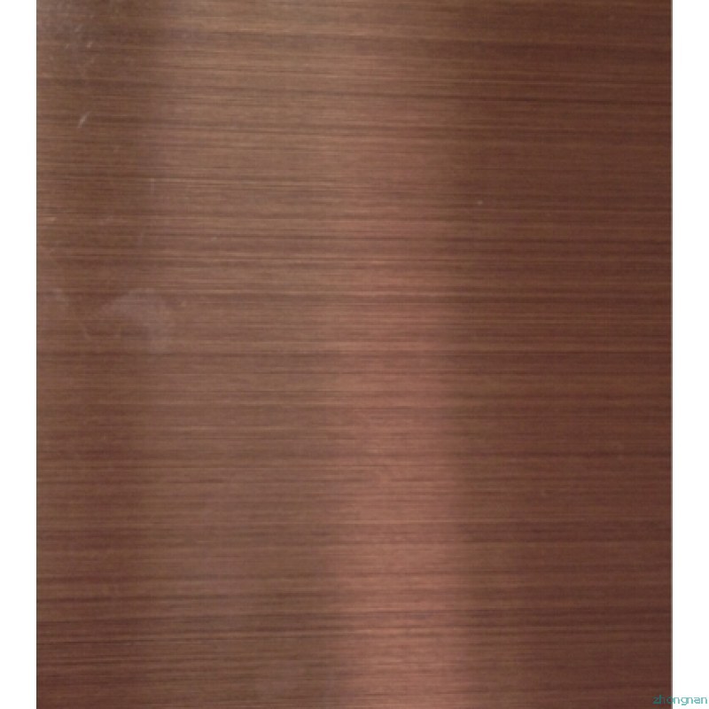 不銹鋼仿古銅板:不銹鋼仿古銅板 ,有紅銅,青銅,仿紅古銅,仿青古銅,亮光紅古銅,亮光青古銅,啞光紅古銅,壓光青古銅等,通過化學(或電化學)處理,在不銹鋼表面形成一層高抗蝕性氧化膜,給不銹鋼著上古銅色彩,不僅使其保持了不銹鋼原有的各種優越性,而且使其耐蝕性能、耐老化性能、耐紫外線照射性能和外觀裝飾效果優于普通不銹鋼。不銹鋼仿古銅板具有耐熱性:在沸水中浸漬28天,在200℃以下暴露五個星期,在250℃以下長期暴露,加熱到400℃,膜層色澤均無明顯變化;耐磨性和抗刻劃性能:能隨在500g/cm2的壓強下,橡皮摩擦2000次以上不變色,用300g的鋼針刻劃不劃穿;加工性能:能承受常規的模壓加工、深拉延、彎曲加工以及加工硬化,進行180℃彎曲試驗和8mm的杯突試驗后,氧化膜均完好!