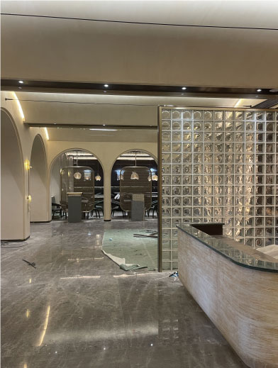 就餐區選擇了玻璃屏風,使就餐區看起來更加寬敞明亮