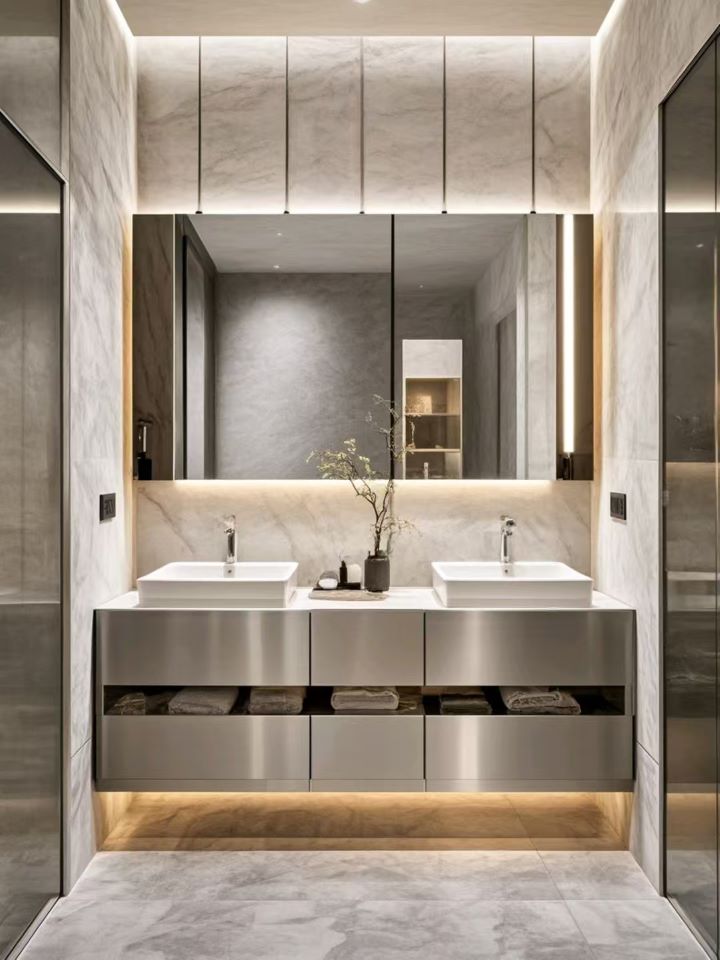 在追求品質生活的道路上,明鉑爾不銹鋼定制浴室櫥柜宛如一顆璀璨的明星,為你的浴室空間帶來無與倫比的魅力與實用性。
