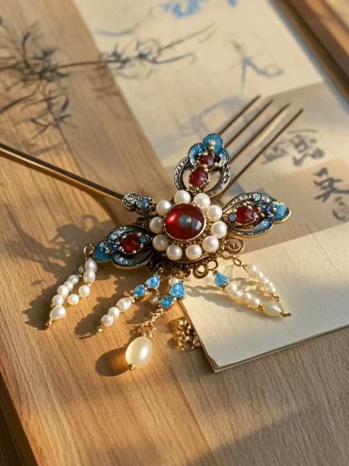 華,散發(fā)著柔和溫潤(rùn)的光澤。此簪無(wú)論是斜插于發(fā)間,伴青絲搖曳,彰顯東方女性的溫婉與優(yōu)雅,還是作為收藏珍品,置于錦盒之中,都承載著千年古風(fēng)的獨(dú)特魅力,讓人不禁沉醉于那如夢(mèng)似幻的古典情境之中。